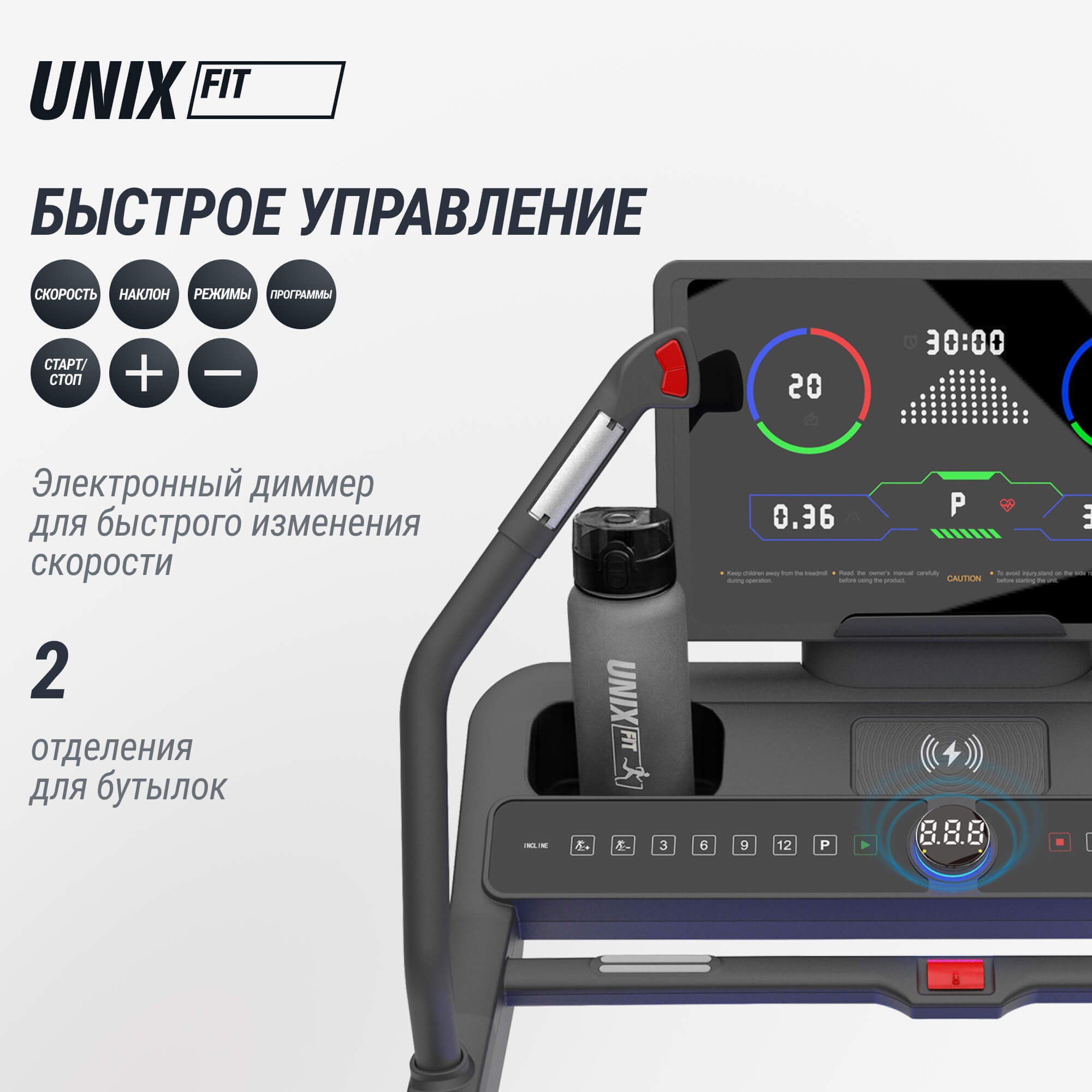 LED фитнес-панель с цветными счётчиками, сенсорное управление + электронный диммер управления с цифровым дисплеем