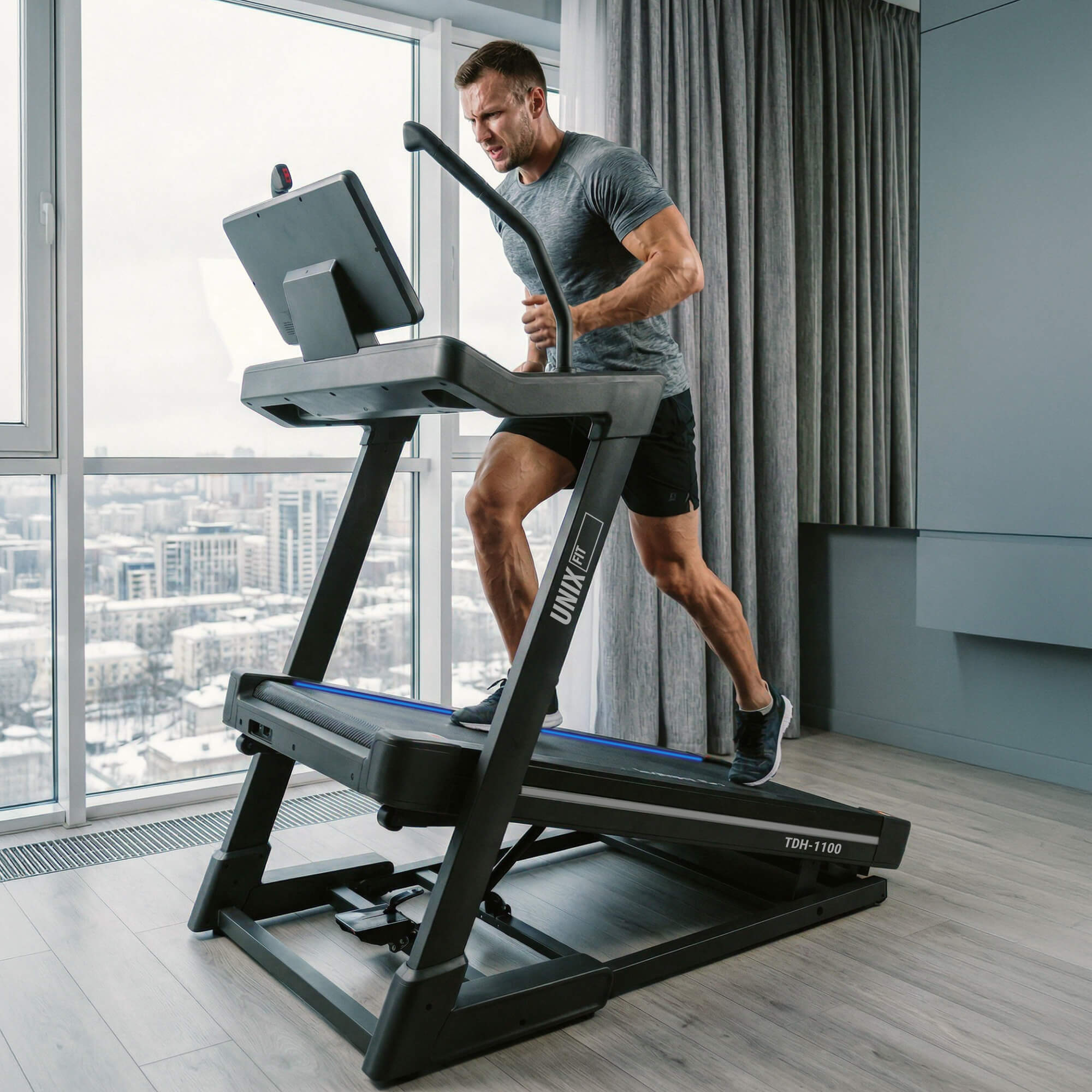 8 эластомеров по периметру для эффективного распределения энергии шага, высокие эластомеры для людей любой комплекции создают ощущение мягкости при каждом шаге, эффективно гасит удары стопы о поверхность ленты, снижая нагрузку на суставы и позвоночник
